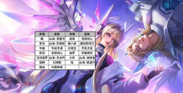 21年春节档的皮肤热度很高,像李白的典藏、双兰情限和祈雪灵祝等,都是目前使用率较高的作品。